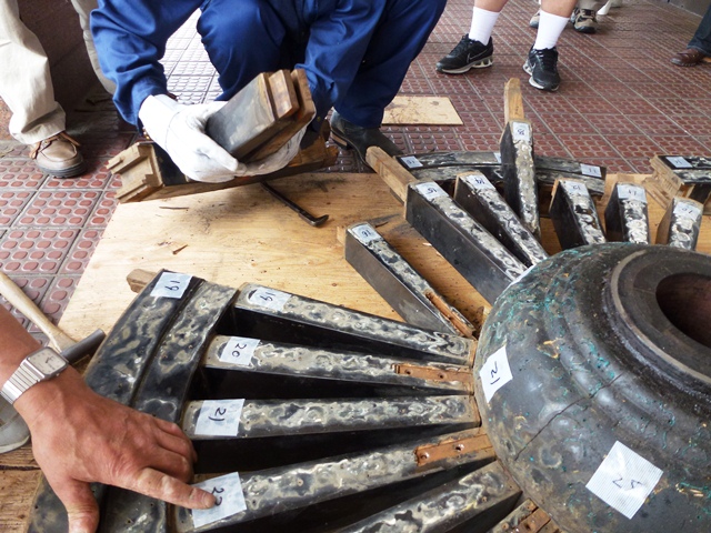 いろいろひび割れもあるようなので、傷みの激しいものは埋め木などして修復を